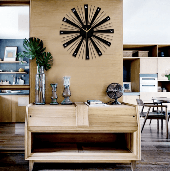 Perceptions of time have always been subjective. The Clavichord, exhibits a clear-cut sunburst pattern. Viewed from the side, it's full depth is revealed and all its glory. Clavichord's 3D structure is cleverly keyed to the hours, so telling the time works from any perspective. And, given its diameter of 37cm, there can be no more excuses for being late for an important date.