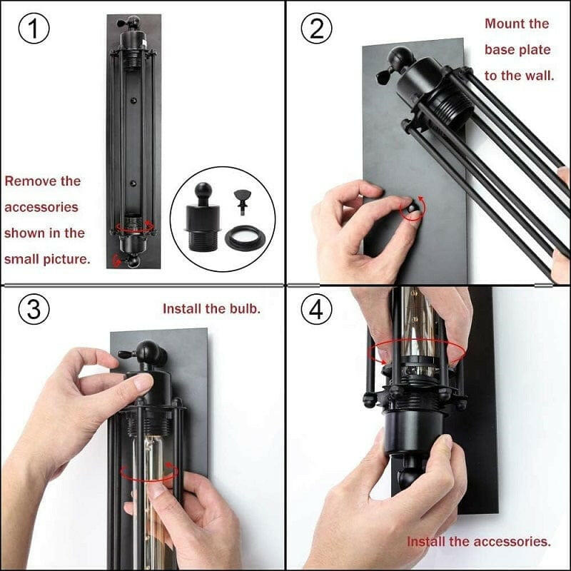 Bulb Base: The Vintage Wall Light features an E27 bulb base that supports a maximum wattage of 60 W. To make things even more convenient for you, a test lamp with an "Edison T300 bulb" is included in the package. If you need additional bulbs, you can easily find them with a quick search.